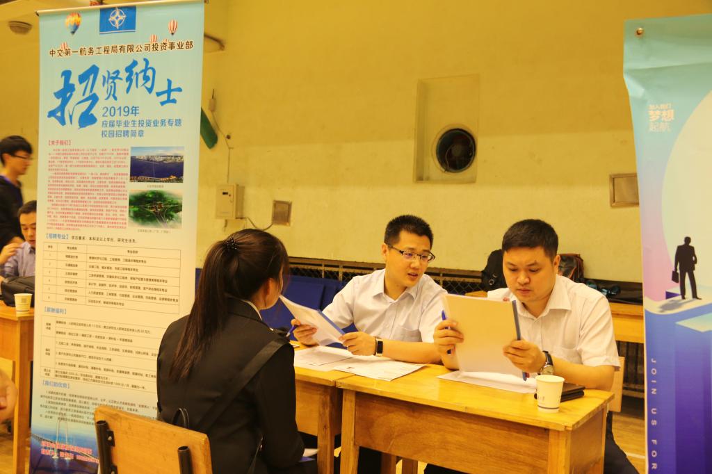 9月4日上午,中国交建在体育馆进行了现场招聘。招聘范围涵盖了土木工程类、材料类、机械类、经管类、汉语言文学、外语等专业等相关专业,来自我校的2019届相关专业近3000余名毕业生参加了招聘会并投递简历。兰州交通大学副校长马军党和中国交建领导现场查看了招聘活动,并与参会单位代表和毕业生进行了交流。截止目前为止,我校2019届本科及研究生毕业生近200人与用人单位签订就业协议。