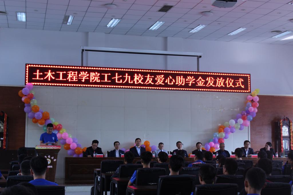 “工79校友爱心助学金”是由土木工程学院铁道工程专业79级全体校友2013年毕业30周年聚会之际自发组织设立的,每次评选10名学生,每人资助3000元,今年为第六批发放,共计资助学生60名,累计发放助学金18万元。