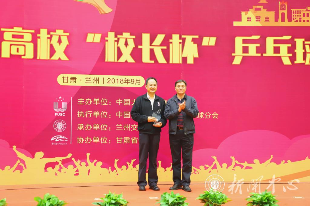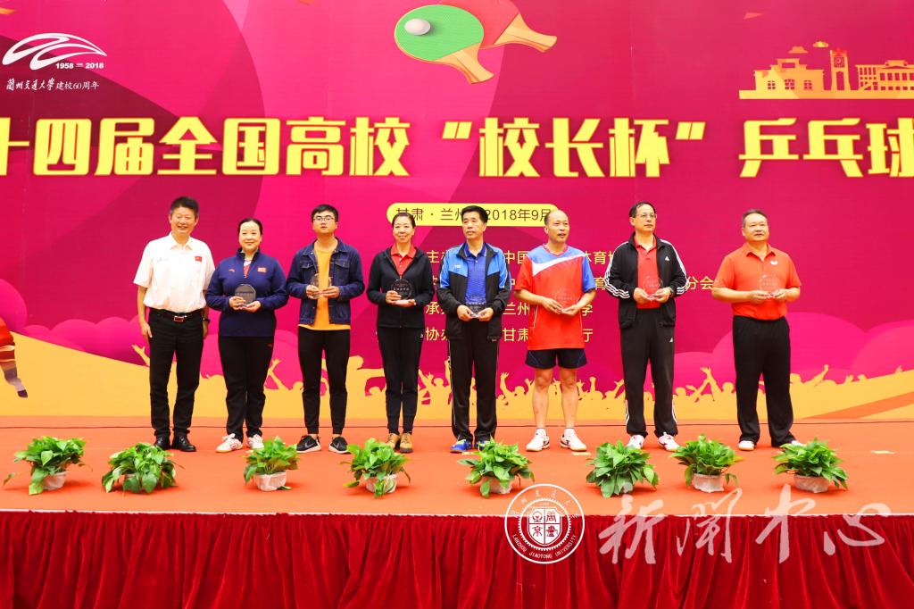 教育部学生体育协会联合秘书处原副秘书长、中国大学生体育协会常务理事张燕军,中国大学生体育协会乒乓球分会常务副主席王跃,兰州交通大学党委书记杨子江、副校长陈兴冲、纪委书记范爱国分别为混合团体比赛代表队、优秀运动员全胜奖和优秀组织奖进行颁奖。