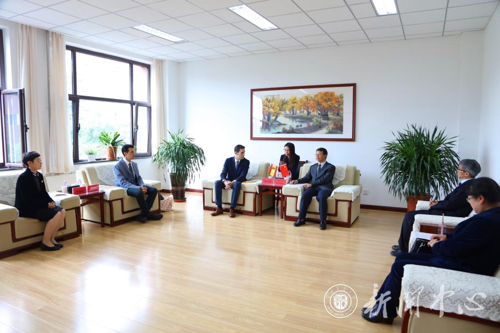 陈兴冲副校长向代表团一行表示欢迎,并简单介绍了我校历史沿革、学科特色、国际交流及国际教育等基本情况,重点介绍了学校与西班牙高校开展合作与交流情况。陈校长指出,我校与西班牙高校有着广泛的合作与交流,并提议以此次会面为契机,进一步深化双方交流合作内涵,提高学校的国际化办学水平,推动中西两国高等教育发展。