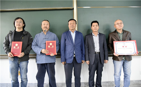 讲座开始前,郭殿声简要介绍了三位艺术家。高云庆副校长为三位艺术家颁发了我校兼职教授聘书。