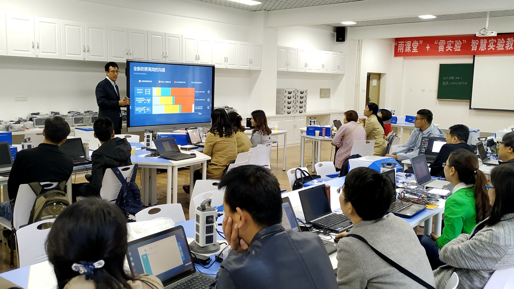 此前,10月10日,借此次校企合作契机,电工电子实验中心成功举办了“雨课堂”+“雷实验”智慧实验教学模式研讨及电子技术课程实验培训,来自兰州理工大学、西北师范大学、西北民族大学、甘肃农业大学、政法学院和我校共30余位教师参加了研讨培训。