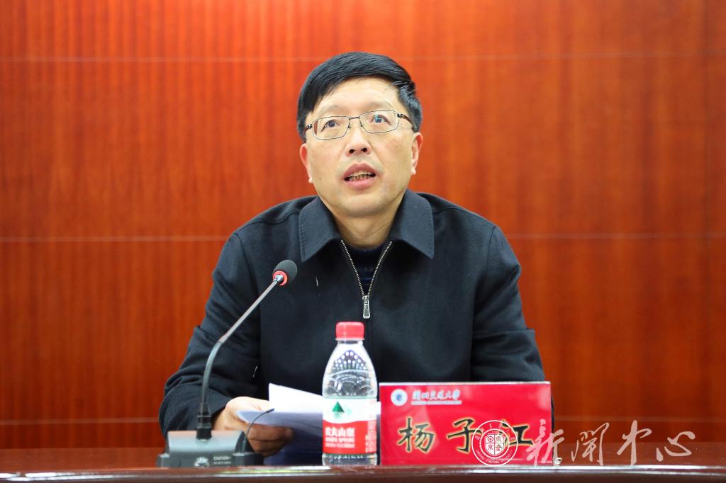 党委书记杨子江发表讲话,从充分认识“弘扬爱国奋斗精神、建功立业新时代”活动的重要意义、结合学校实际扎实推进各项活动的顺利开展、切实做好活动的宣传组织保障工作三个方面,就我校深入开展“弘扬爱国奋斗精神、建功立业新时代”活动作了安排部署。