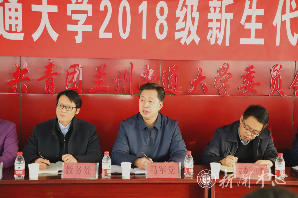 马军党副校长在讲话中向同学们传达了广大同学要爱校荣校的信念。马军党副校长指出,兰州交通大学是一所历史悠久、特色鲜明、实力雄厚的大学,也是一所能让广大同学大有可为的大学,学校的风采与实力在校庆期间得以展现,得到省委省政府的高度肯定。我校2018级新生恰逢兰州交通大学甲子华诞之际入学,得以见证了学校60年办学历史的集中展示。马军党副校长强调,学校坚持以学生为中心,在接下来的工作中将竭尽所能为同学们营造良好的学习生活环境,并向同学们提出了五点希望:一要树立远大人生理想,坚定奋斗人生;二要学好专业知识,培养创造思维;三要努力提升综合能力,提高阅读量;四要加强锻炼身体,增强身心素质;五要增加安全意识。
