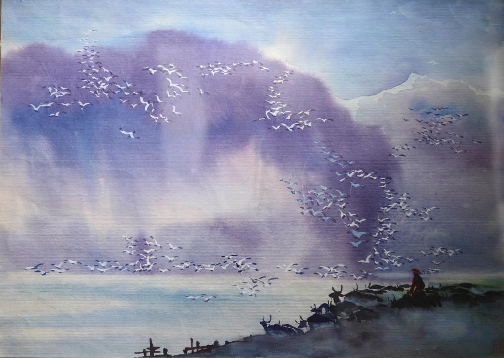 先生简介:张阶平,美术教育家、水彩画家,1911年出生。1925年考入山东美术专科学校西洋画科,1927年至1931年求学于北平大学艺术学院西洋画系,师从徐悲鸿、王悦之、齐白石、克罗多(法国)等众多国内外名家。毕业后任青岛市立师范学校美术教师。1936年至1948年辗转西安及附近州县的中学和师范学校任美术教师。1949年至1956年先后任西北军政大学艺术学院美术系、西北人民艺术学院美术系副教授。1956年调甘肃省文化局工作。1958年后先后在兰州艺术学院美术系、甘肃教育学院研究室、西北师范大学美术系任教。1987年离休。先生扎根西北52年,从事油画、水彩画、国画的创作与教学,培养了一大批优秀的美术教育工作者,为甘肃乃至西北美术事业的发展做出了突出的贡献。