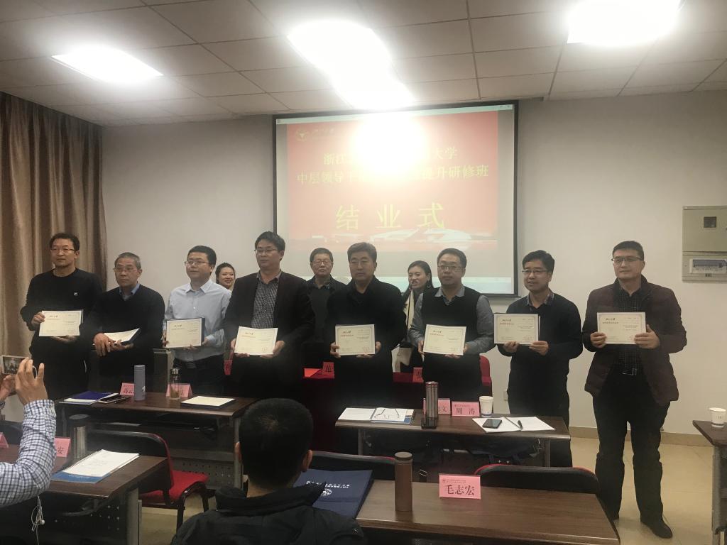 为期一周的研修活动,我校参训干部认真学习、表现良好,被浙江大学继续教育学院授予“优秀班级”荣誉称号。