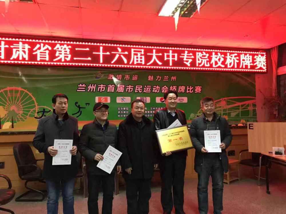 近日,第26届甘肃省大中专院校桥牌赛在甘肃省桥牌协会活动中心举行,我校代表队取得了教工组团体赛第一名的好成绩。