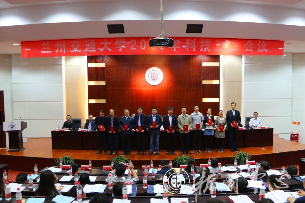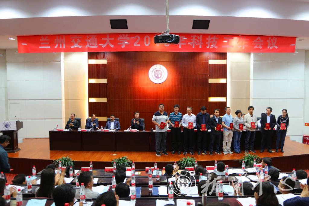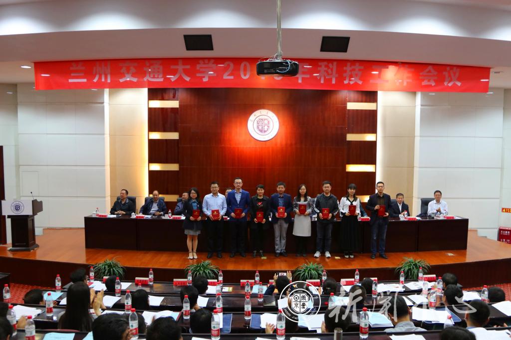马军党副校长宣读了《关于表彰奖励兰州交通大学2017-2018年度科研先进集体、科研先进个人、青年科研新秀和科研管理先进个人的决定》等有关科技工作的三个表彰奖励决定。在热烈而庄重的气氛中,与会校领导向10个科研先进集体、52位科研先进个人、19位青年科研新秀及15位科研管理工作先进个人代表颁发了奖牌及荣誉证书。