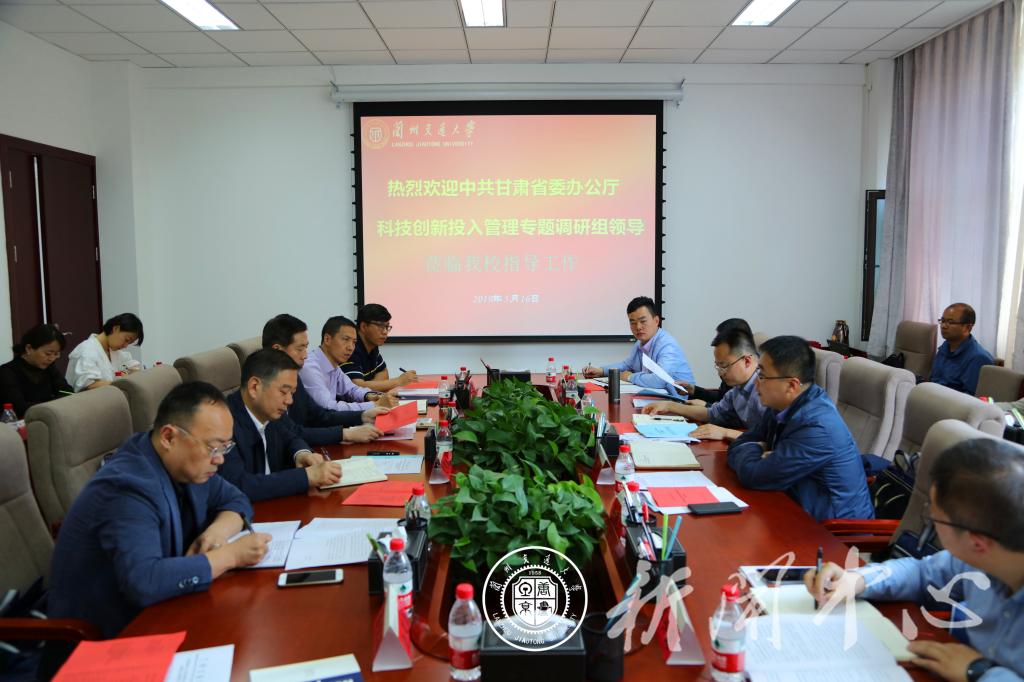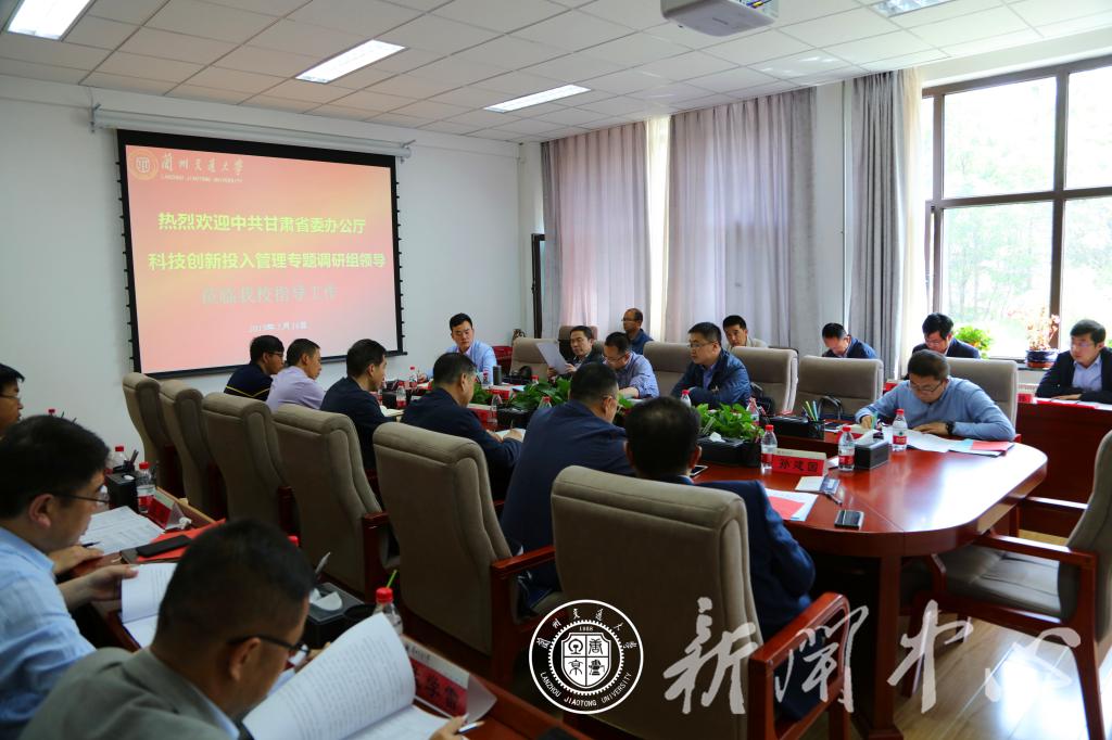 5月15日,甘肃省委办公厅调研处副处长陈钟、省科技厅科资源配置与管理处副处长康鹏、省教育厅科学技术处调研员栗波等一行莅临我校,围绕科技创新投入管理情况进行专题调研。调研会在学校实验7号楼224会议室举行,党建武副校长出席,学校相关职能处室负责人和部分单位教师代表共20余人参加会议。