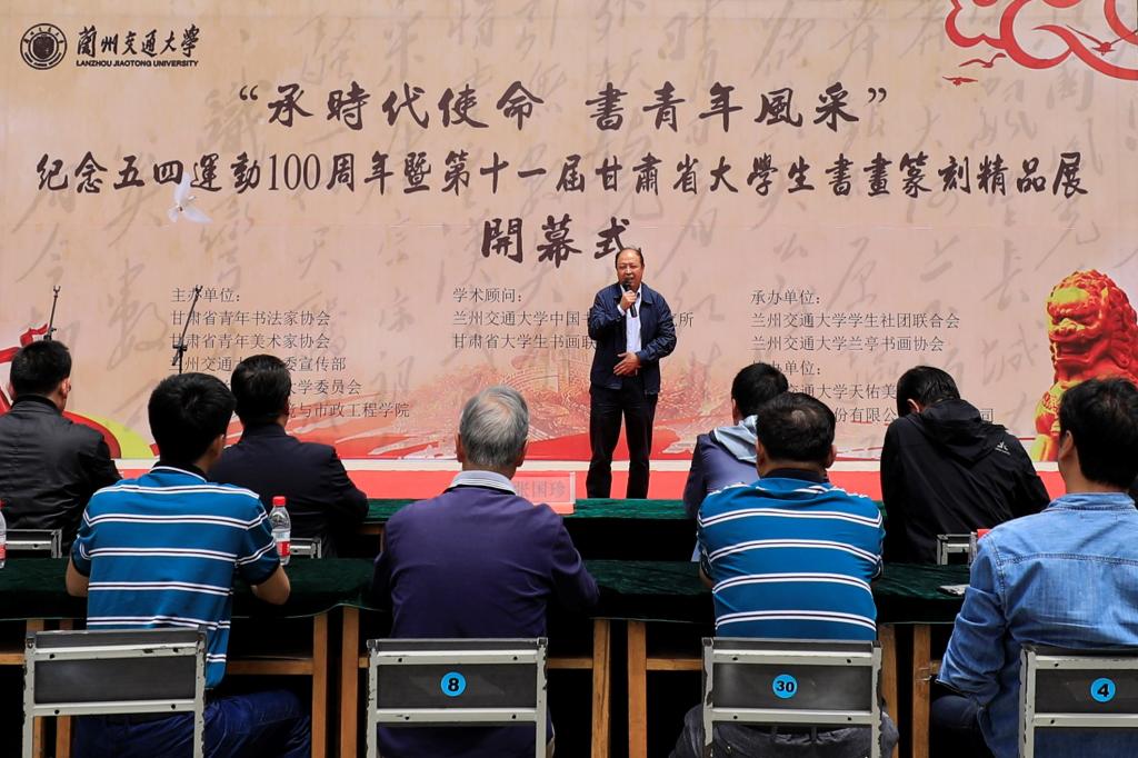 校团委副书记王若凡、甘肃省青年美术家协会副主席郭殿声、甘肃省青年书法家协会副主席王海雄分别为开幕式致辞。