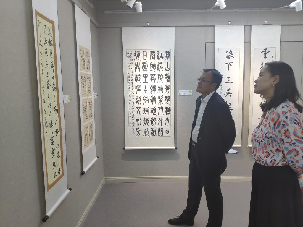 报告结束后,褚博士还饶有兴趣地参观了纪念五四运动100周年暨第十一届甘肃省大学生书画篆刻精品展。