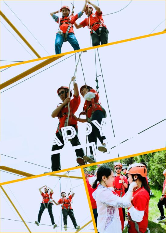 此次拓展训练旨在增进青年教工彼此间的交流、增强大家的团队合作意识。全体学员在短暂的热身活动后,分成“甩锅”和“爱在一起”两队,在拓展营老师的精心指导下,通过团队成员们的团结协作,先后完成了 “高空飞人”、“群龙取水”、“指压板竞技”、“我们是最棒的”等一系列以激发个人潜能、熔炼团队智慧为宗旨的室内外素质拓展训练项目。