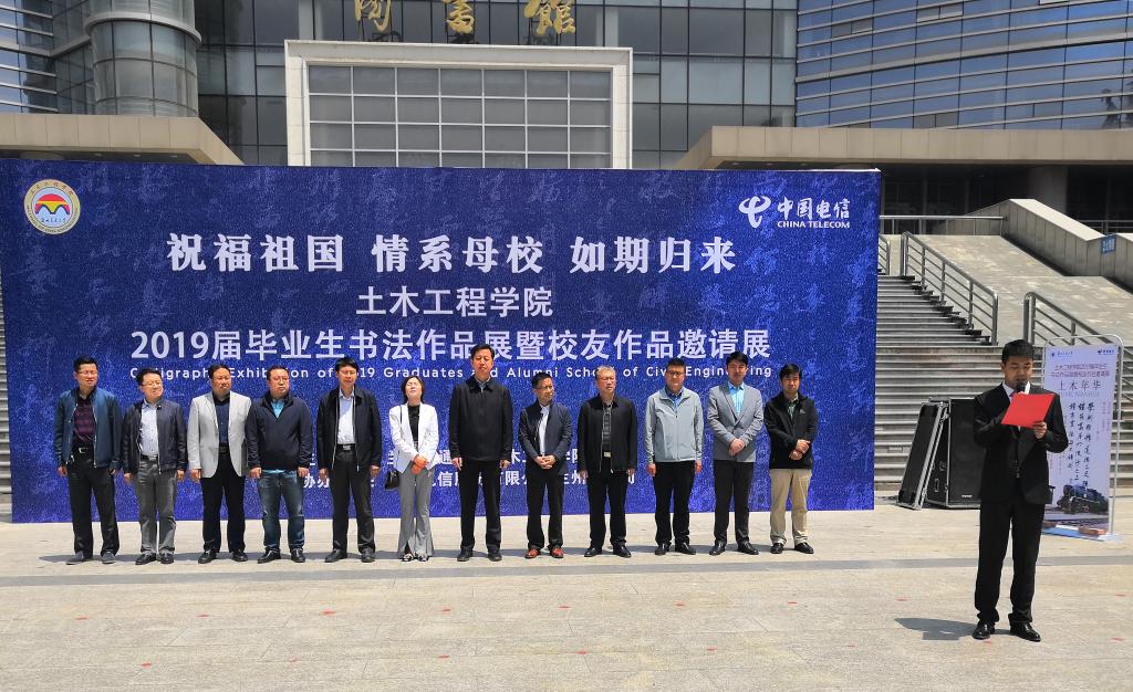 为庆祝新中国成立70周年,纪念五四运动100周年,激励青年敢于有梦、勇于追梦、勤于圆梦,不忘初心,牢记使命,继续前行,充分展示当代大学生的精神风貌,表达土木学子对祖国、母校的祝福和感恩,5月28日中午,由土木工程学院主办、中国电信兰州分公司协办的“祝福祖国、情系母校、如期归来”土木工程学院2019届毕业生书法作品展暨校友作品邀请展在图书馆前举行。马军党副校长出席活动,相关职能部处、协办单位和学院领导参加了开幕式。