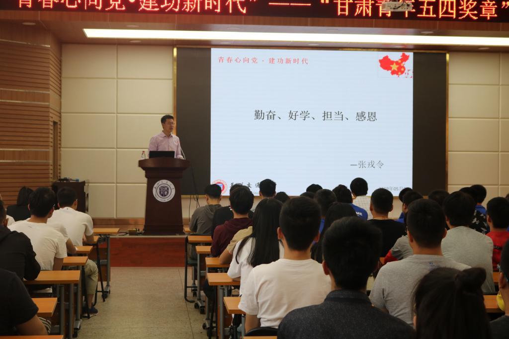 5月30日下午,我校“青春心向党·建功新时代”——“甘肃青年五四奖章”获得者个人事迹分享会在学校二教报告厅举行。