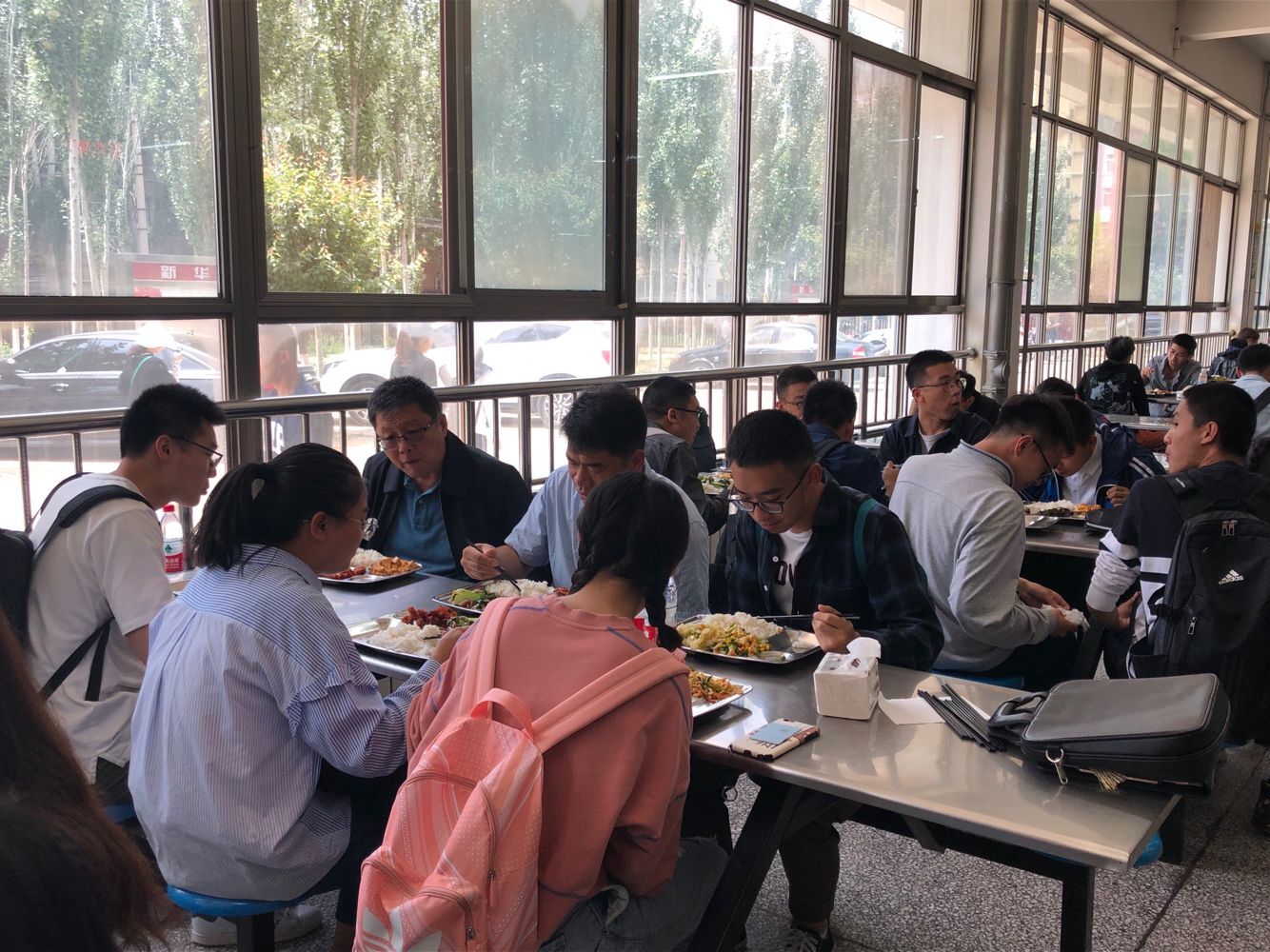 中午,范爱国与联系班级同学一同来到学校百苑餐厅,与大家一起就餐。其间,范爱国询问了解同学们的饮食习惯、家庭经济情况、日常生活开销等有关情况,同学们毫无拘束的一一回答,并对校领导的亲切关怀表示谢意。范爱国还与同学们分享了自己大学期间的食堂就餐经历并认真倾听同学们对食堂饭菜的质量、价格、卫生状况等方面的评价。