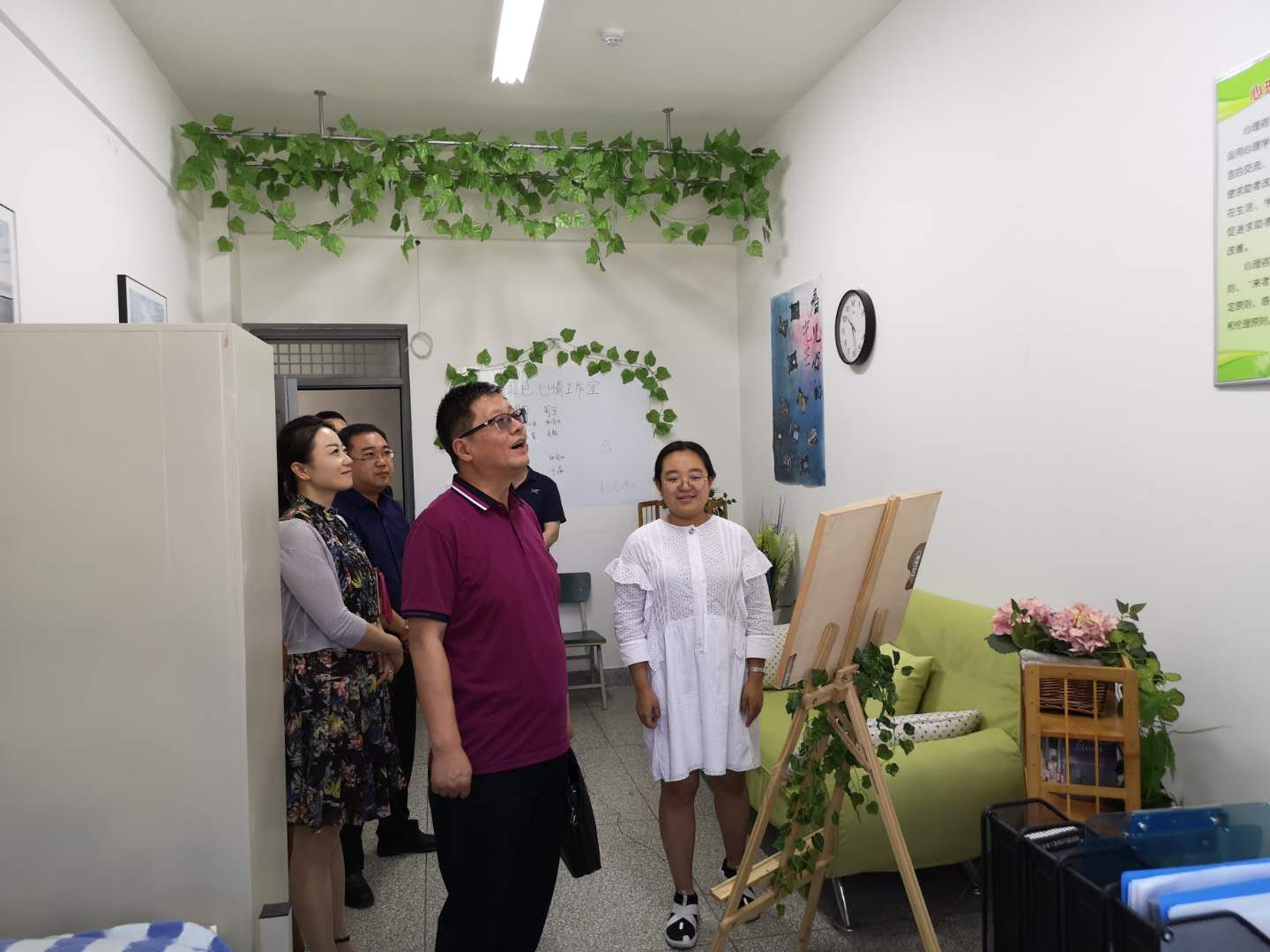 范爱国首先来到5号学生公寓,了解辅导员值班室、党员工作站和绿色心情工作室的工作开展情况,详细询问了学生公寓服务站的运转情况。