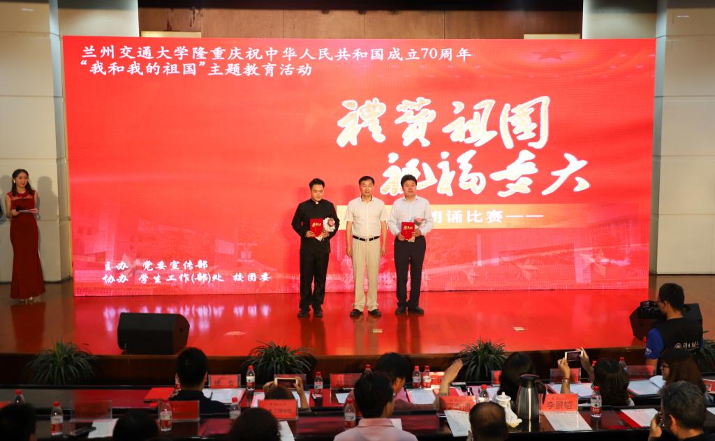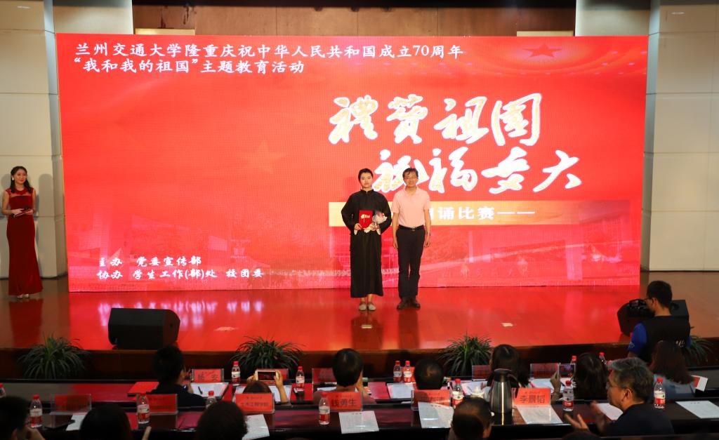 6月20日下午,由党委宣传部主办,学生工作部(处)、校团委共同协办的兰州交通大学隆重庆祝中华人民共和国成立70周年“我和我的祖国”主题教育活动——“礼赞祖国·祝福交大”朗诵比赛决赛在国际会展中心三楼大报告厅举行。校党委副书记买寿清出席,校纪委、宣传部、学生处、校团委、附属小学等单位负责人和360余名学生代表参加了活动。