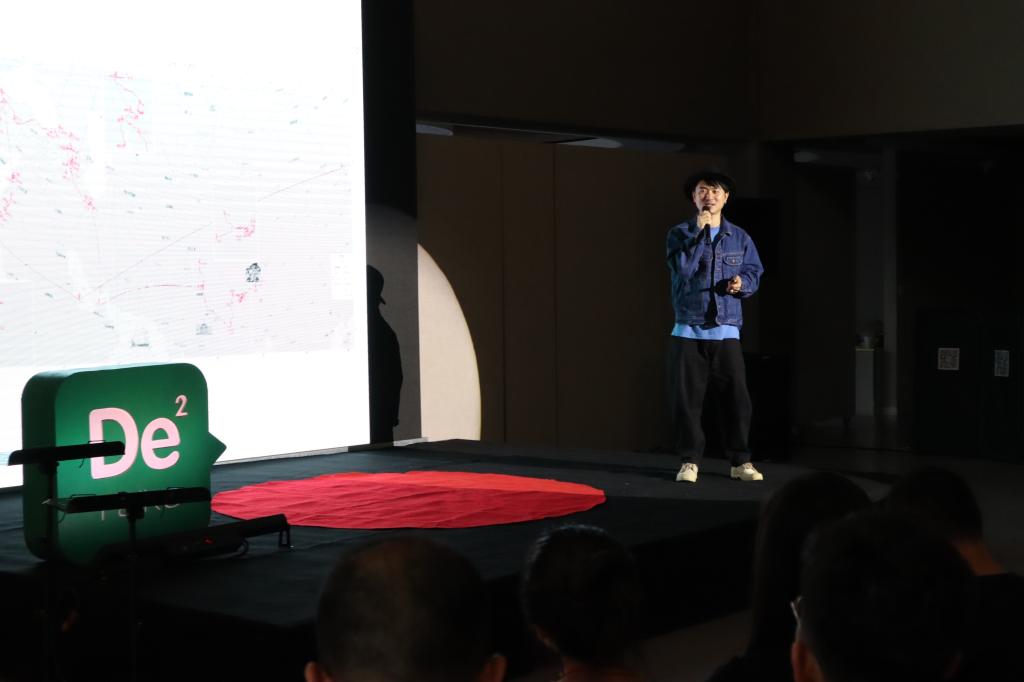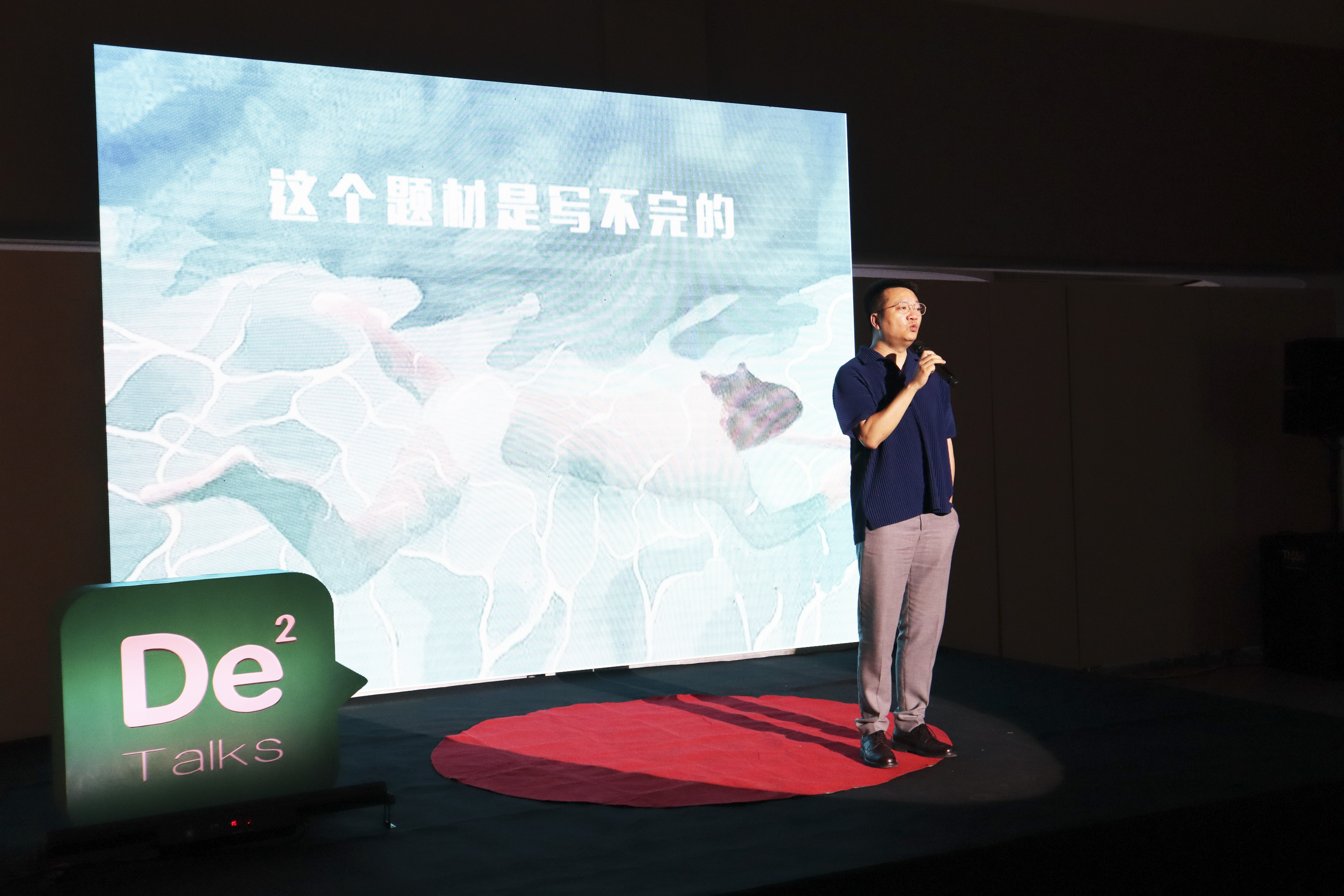 晚上七点,活动在轻快的音乐和绚丽多彩的灯光氛围中拉开了序幕。作家、音乐人韩松落和作家、摄影师丁海笑现场分享了他们在文学和艺术创作,以及旅行摄影中的切身体验,并结合创作过程与自身成长故事展开了精彩的演讲。
