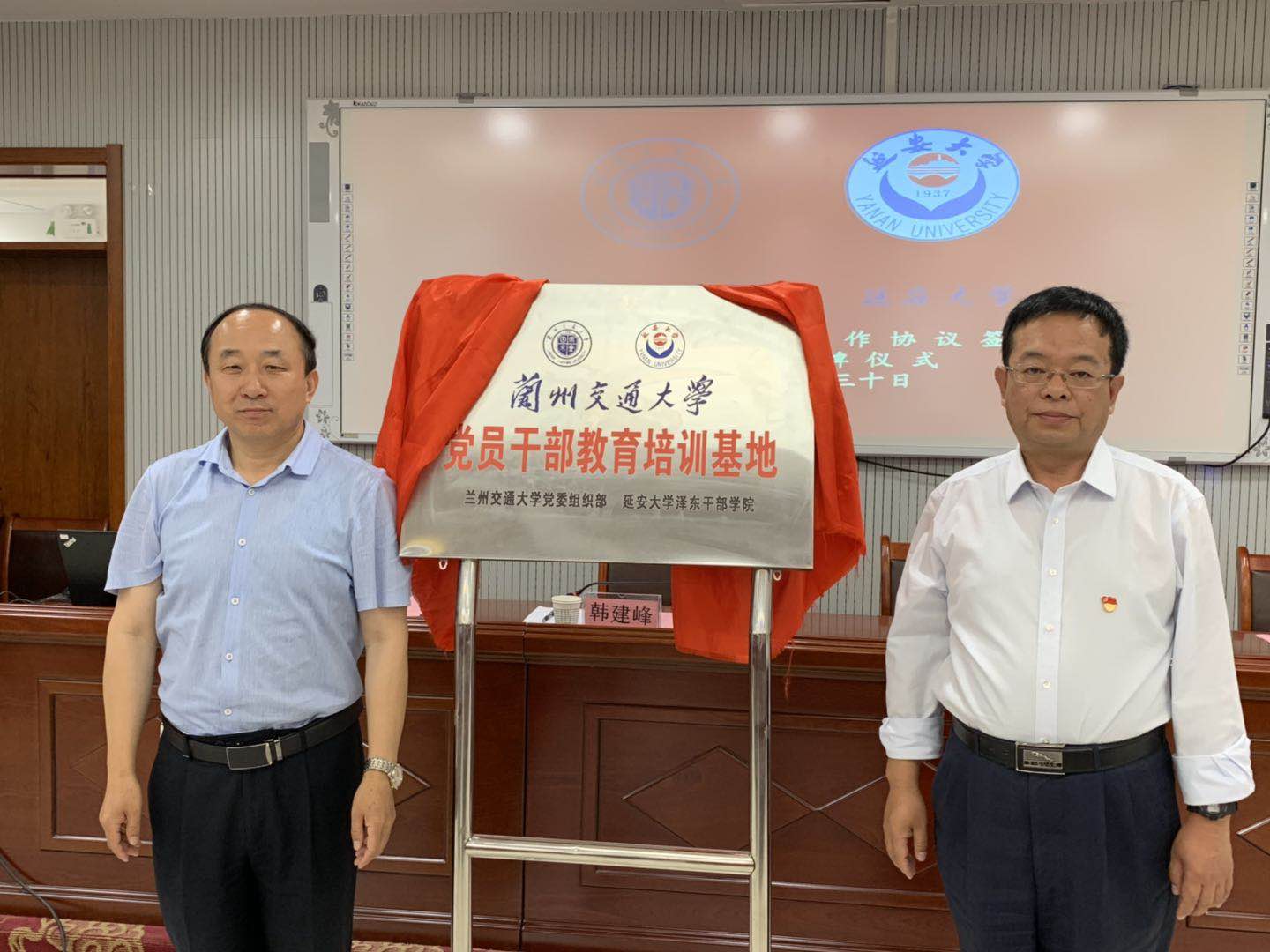 揭牌仪式上,我校与延安大学泽东干部学院签订了党员干部培训基地合作协议。根据协议,该基地依托延安大学泽东干部学院,以资源共享、优势互补、互利共赢为原则,为我校师生党员及领导干部在党性修养、理想信念、师德师风、延安精神等方面的教育培训提供支持;双方在党员干部培训内容、培训项目、现场教学点建设、教学师资、教学研究等方面开展紧密合作,全面建立良好的合作关系,共同开发相关培训课程或合作开展科学研究等。