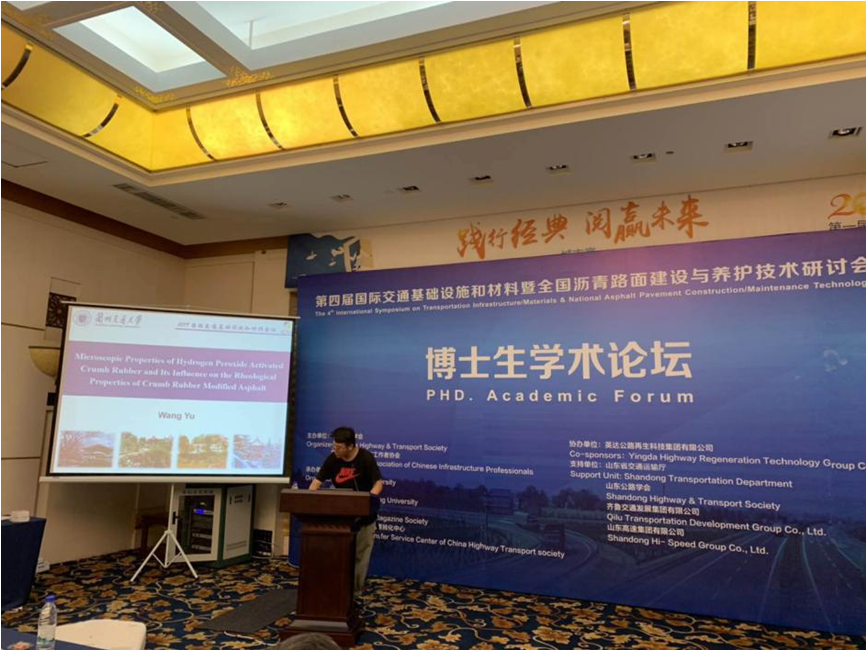 研究生朱旭伟、王宇在博士生学术专题论坛分别做了题为“基于细观结构的排水沥青路面渗流及长周期堵塞规律研究”和“过氧化氢活化胶粉的微观性能及其对改性沥青流变性能的影响”的学术汇报,向专家展示了我校研究生在路面材料方向的研究成果和学术风采。