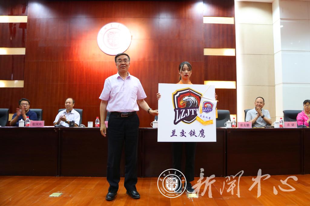 代表团团长、校长李引珍向代表团授牌、授旗。