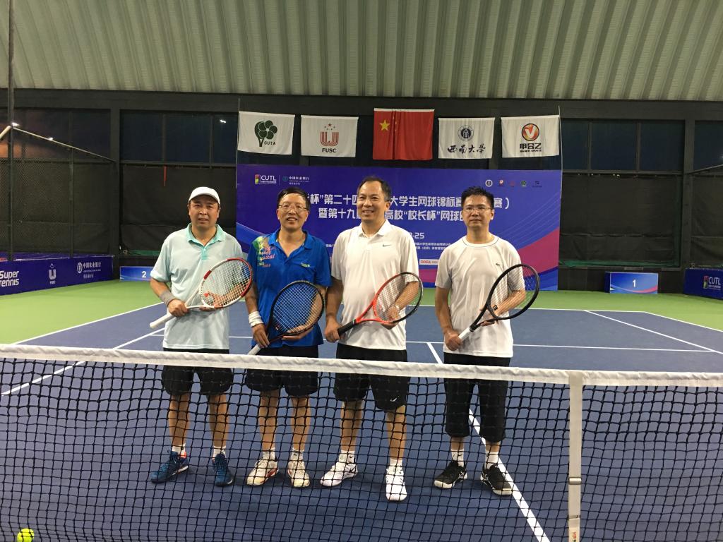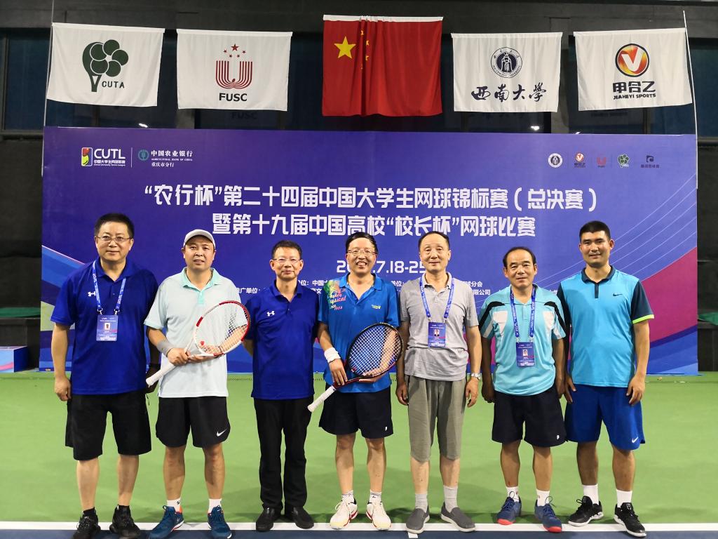此外,7月16日,第二十四届中国大学生网球锦标赛(总决赛)暨第十九届中国高校"校长杯"网球比赛在西南大学正式拉开序幕。我校派出两队参加22至25日的“校长杯”网球比赛,校党委书记杨子江与副校长张国珍组成一队,副校长陈兴冲与原校党委副书记王铁军组成一队,分别参加了“校长杯”甲组和丙组的比赛。经过赛前积极备战,比赛中教练员的周密布阵,队员们奋力拼搏,四天紧张激烈的竞争中,杨子江和张国珍组合获得甲组第五名,陈兴冲与王铁军组合成绩优异。