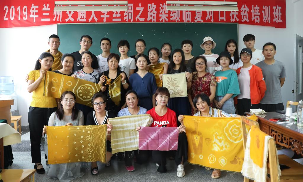 此次临夏对口扶贫培训班是我校对接临夏州开展非遗精准扶贫的培训项目,紧紧围绕文旅部提出“在提高中保护”、“非遗走进现代生活”、“见人见物见生活”的三个重要理念,发挥兰州交通大学在丝路染缬技艺恢复与创新研究方面的既往成果与科研优势,结合甘肃省“非遗+扶贫”临夏传统工艺工作坊工作经验,通过培训一批从事染缬工作或相关专业的具有一定从业基础和条件的人员,有力带动贫困群众就近就业、技艺创新,增收致富。