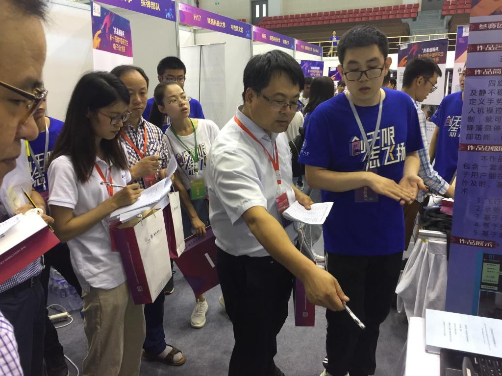 参赛选手通过作品展示和分组答辩等评审环节同台竞技,经过为期两天的激烈角逐,由我校选派的“可穿戴智慧手语翻译系统”荣获团体一等奖,“多功能远程操控机器人的研发与产业化”、“改进的低成本手势控制四旋翼无人机”、“便携式无线电收发系统”分别荣获团体三等奖。
