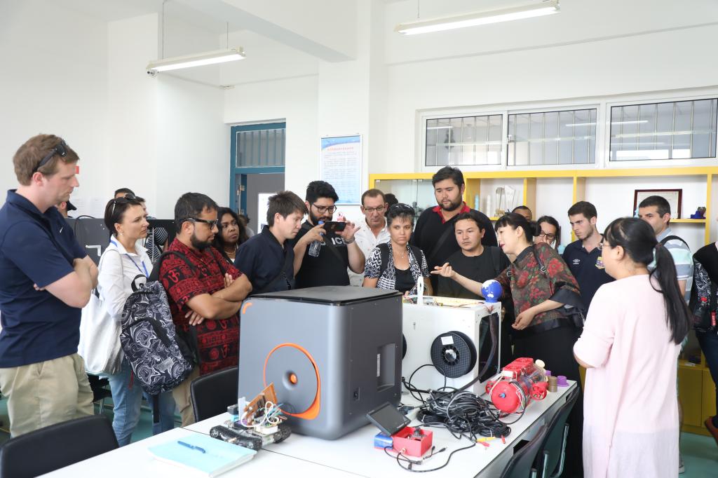 座谈会结束后,交流员们在副校长陈兴冲的陪同下,参观了我校大学生创新创业基地、染缬艺术博物馆和国际教育学院。