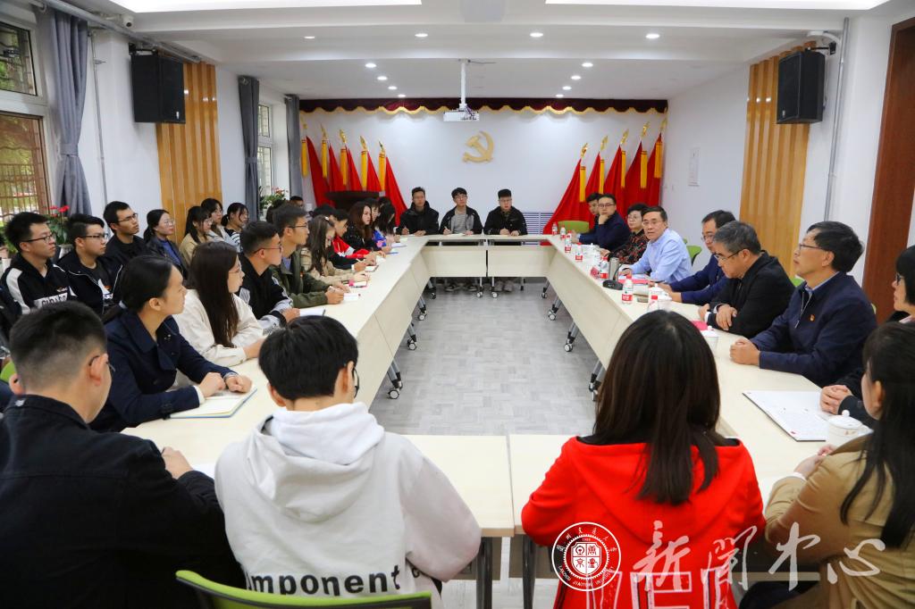 10月10日下午,李引珍校长来到学生公寓党建基地,同交通运输学院、材料科学与工程学院的学生党员代表共话初心。学生公寓管理中心负责人主持了座谈会。期间,中央第五巡回督导组副组长符太增、督导组成员田书彩、辛航、孟凡鹏及甘肃省委组织部常务副部长李秀娟等省上陪同人员莅临指导。