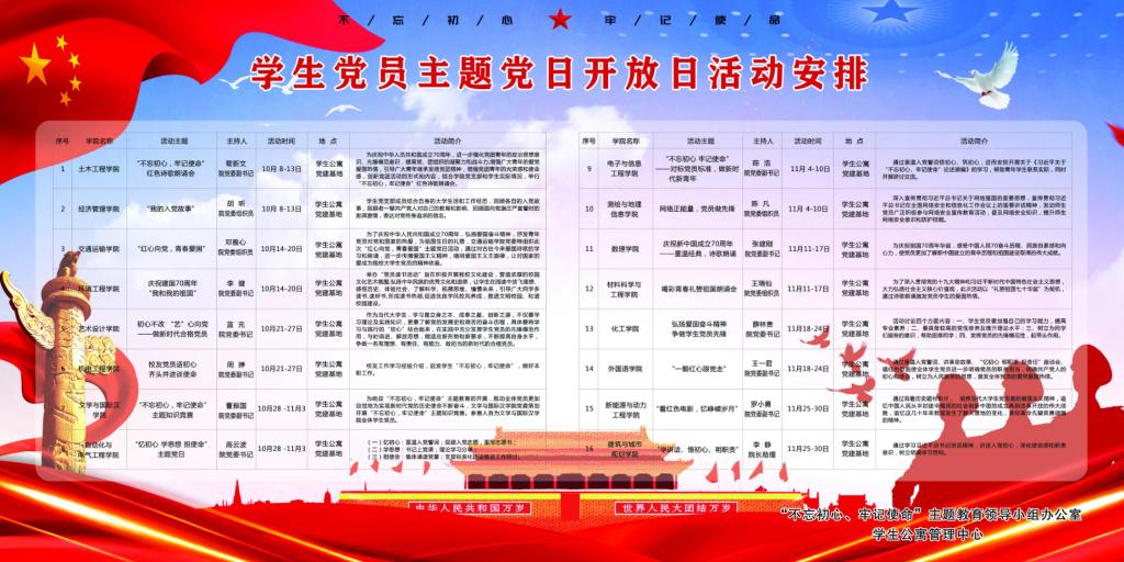 10月10日,土木工程学院和经济管理学院在学生公寓党建基地开展学生党员主题党日开放日活动,以形式多样的内容深化主题教育走深走实、落地见效。拉开了本学期各学院党委学生党员主题党日开放日活动的序幕。