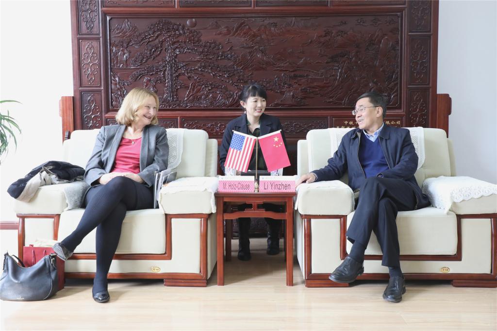 李引珍对Mary Holz-Clause校长再次到访我校表示热烈欢迎。他指出,自从Mary Sue Holz-Clause校长去年11月访问我校以来,双方已经启动了教师培训方面的合作。今年暑假,我校派出12名骨干教师赴美国明尼苏达大学克鲁克斯顿分校参加了为期两周的教学法研修,对于拓宽我校教师的国际化视野,引进先进的教育理念具有积极的意义。目前,我校与明尼苏达大学在经管学院会计专业的双学位课程对接工作进展顺利。李引珍校长希望两校能够继续拓展现有合作,在师生互换交流、合作办学及科研互动方面取得更多进展。李引珍校长代表学校,欢迎更多明尼苏达大学的教师和学生来我校交流学习。陈兴冲副校长表示,我校非常重视与世界一流高校的国际化合作,希望两校能够进一步拓宽合作领域,为双方师生交流搭建更加广阔的平台。