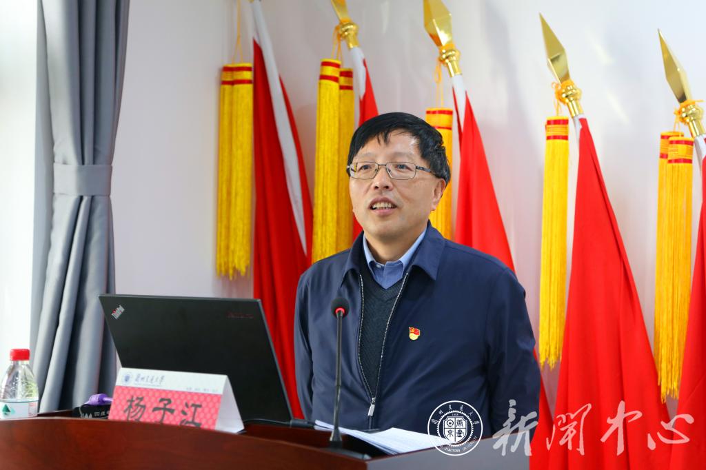 10月22日下午,按照省委“不忘初心、牢记使命”主题教育巡回指导组统一部署,结合学校主题教育工作安排,我校党委书记杨子江在学生公寓党建基地为师生代表作了题为《坚持深学深悟、真学真信,把主题教育成果转化为推动学校事业发展的强大动力》的主题教育专题党课。省委主题教育第十一巡回指导组成员、省文明办三处四级调研员周琨同志列席,我校党委常委、组织部部长陈静主持。