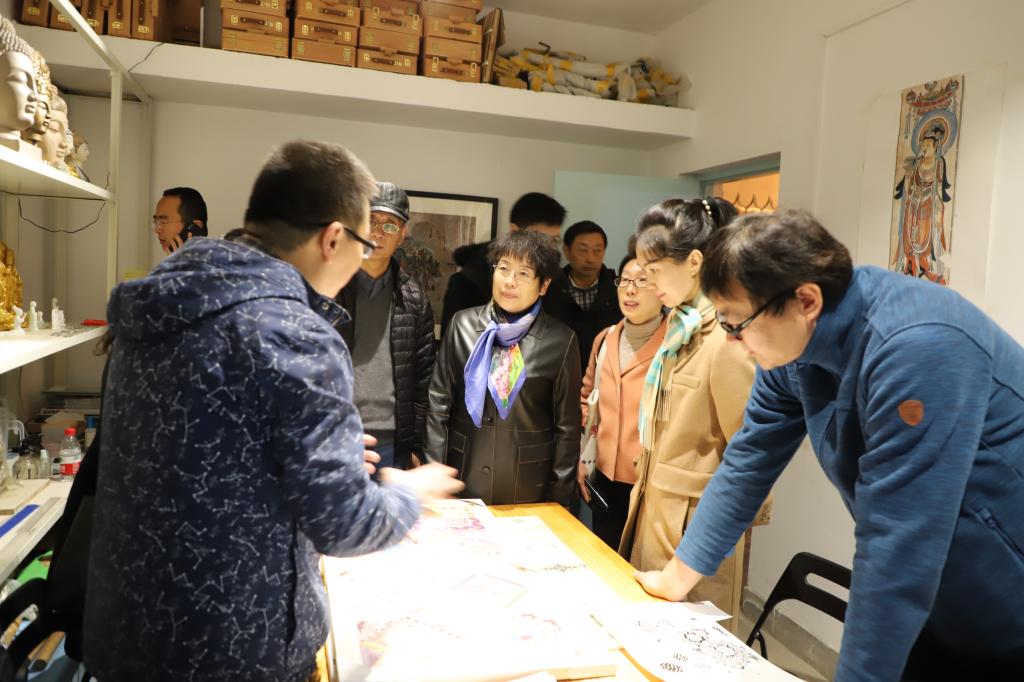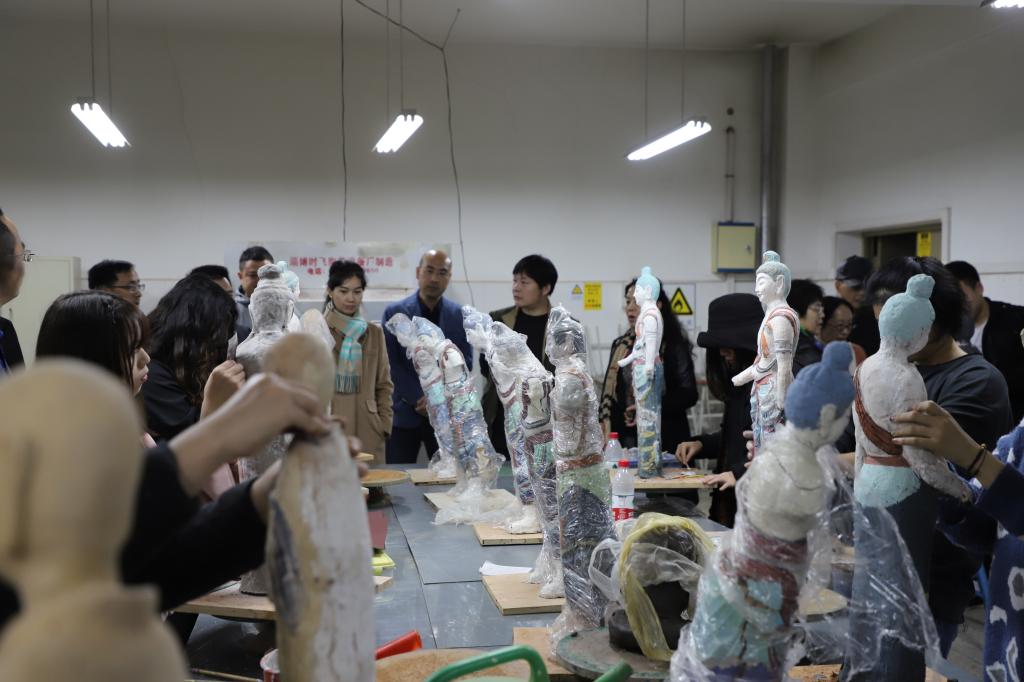 汇报会结束后,教育部调研组一行在学校相关人员的陪同下,实地调研、考察了敦煌彩塑技艺传承与实践基地,对基地建设成果成就给予了肯定,在充分肯定之余,也对一些需要进一步发展、提升的工作提出了建设性意见。