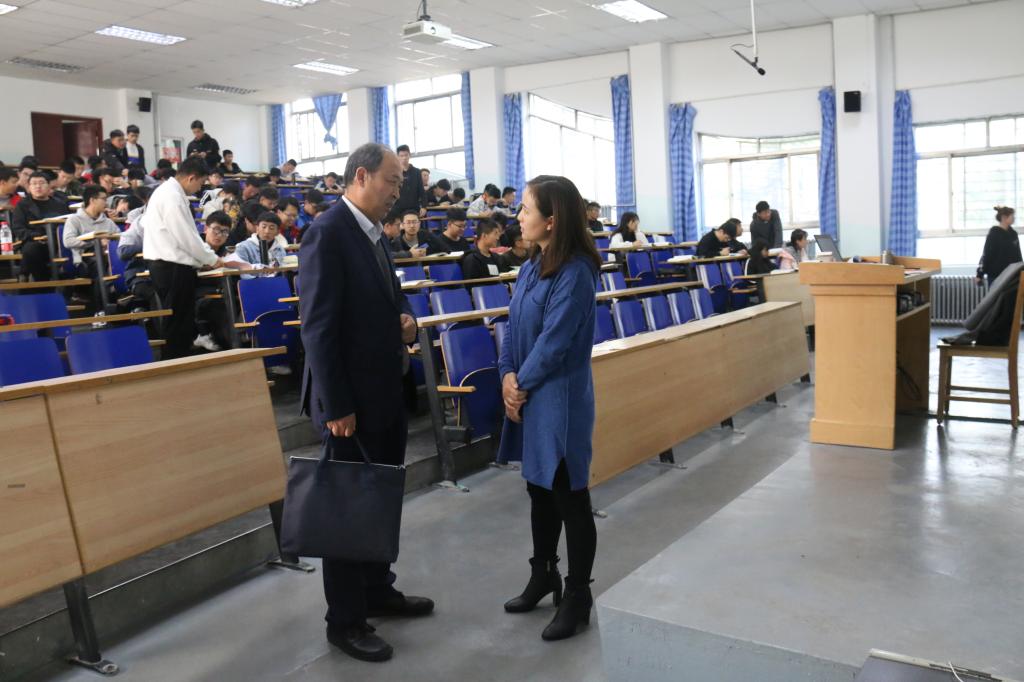 课后,张国珍与任课教师进行了深入交谈,对其及时更新教学内容,尤其是能够将党的十九届四中全会精神第一时间就运用在课堂教学中给予了充分肯定,体现了思政教师的政治敏感性和时效性,同时就思政课程教学方式方法改革、课堂教学互动及小班化教学,注重培养学生发现、分析和解决问题能力等方面与任课教师进行了交流。