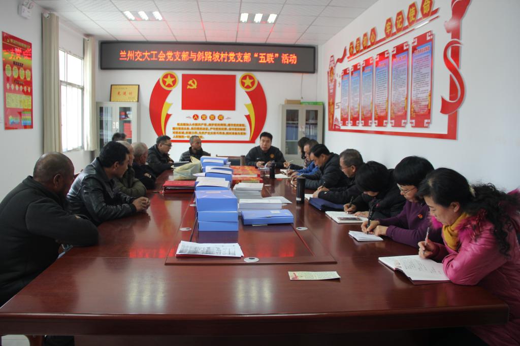 在斜路坡村村委会,工会党支部9名党员与斜路坡村部分党员进行了交流座谈。驻村干部介绍了斜路坡村脱贫攻坚工作取得的成效。截至目前,斜路坡村贫困户已由113户519人下降为4户19人,贫困发生率由37.9%下降为1.69%,远低于国家规定的9%的贫困发生率。10月27日,斜路坡村接受了临夏州委督察组的检查验收,完成了整村脱贫的目标,后期将接受省委和中央的抽查验收。听完驻村干部的介绍,与会党员都倍感欣慰,斜路坡村在各级党委领导下,在政府大力投入下,在帮扶单位的扶持和党员干部的带领下,按期完成了脱贫的目标,充分体现了党和政府对脱贫攻坚工作的信心和决心,也以实际成效体现了共产党员的初心和使命。