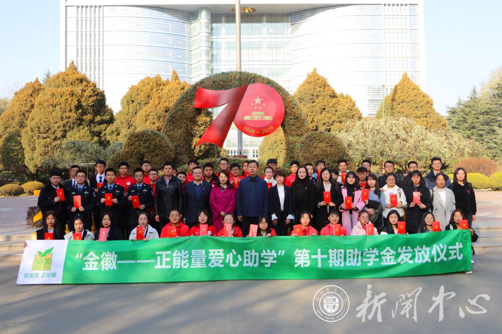 为落实《甘肃共青团助力脱贫攻坚实施意见》精神,推动实施“青少年助学助困计划”和《甘肃省中长期发展规划(2018-2025)》有关要求,11月20日,由共青团甘肃省委、甘肃省青年联合会、甘肃青年企业家协会、甘肃金徽酒股份有限公司联合发起的“金徽—正能量爱心助学”第十期助学金发放仪式在兰州交通大学举行。团省委副巡视员杨晓蓉、我校副校长马军党、金徽酒兰州销售有限公司副总经理李娜出席仪式,并为来自省内五所高校的家庭经济困难学生发放助学金。