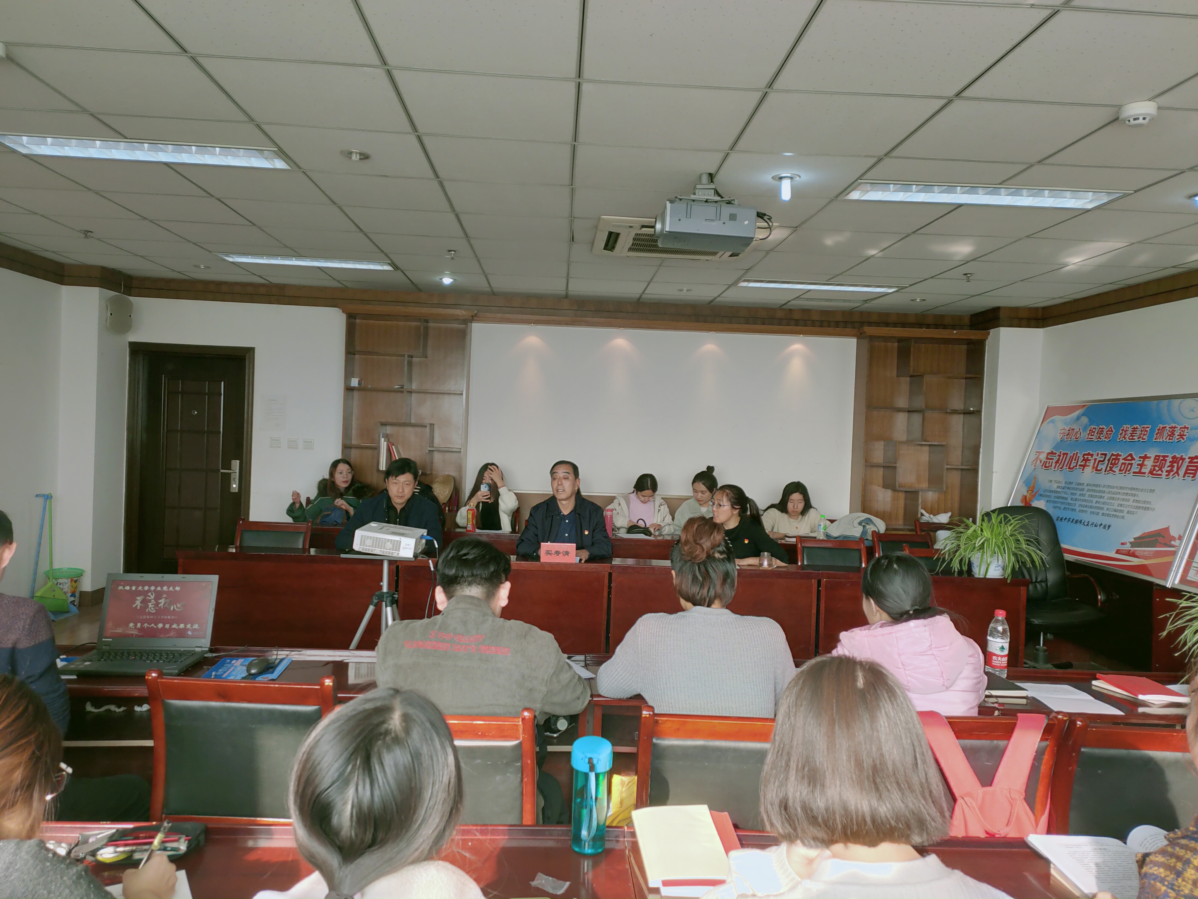 11月21日下午,文学院汉语言文学学生党支部主题教育个人学习成果交流会在行政楼1108室举办。党委副书记买寿清出席,文学院相关负责人、汉语言文学党支部全体学生党员参加了会议。