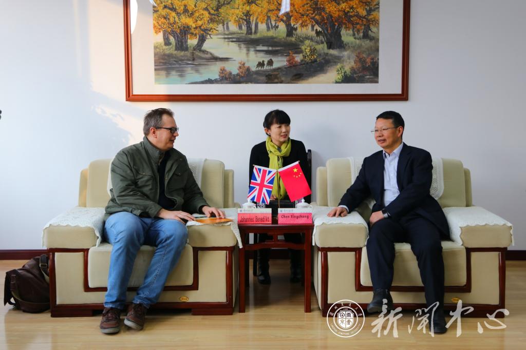 陈兴冲对Johannes Benedikt副院长一行的来访表示欢迎。他回顾了两校近年来的交流合作成果,并表达了我校在中外合作办学、研究生联合培养、教师科研合作、学生交流、合作共建实验室等方面与卡迪夫大学开展交流合作的愿望。
