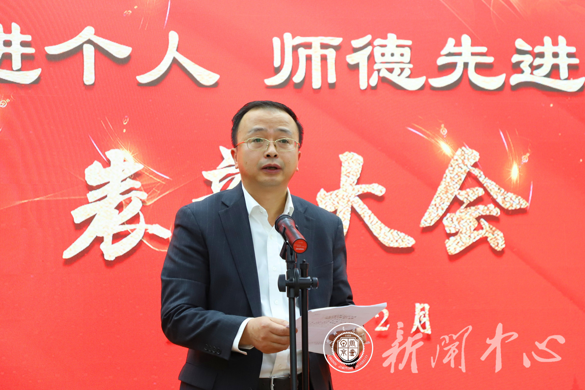 大会上,刘振奎宣读了关于表彰兰州交通大学2019年度“师德先进个人”、“师德先进工作者”的决定,校领导为获奖教师颁发荣誉证书。数理学院张睿教授代表受表彰教师进行了发言,发言中生动鲜活的实例展示了我校教师辛勤耕耘、精心育人的优秀品格。他们以德立身、以德立学、以德施教,他们顾全大局,担当奉献,情怀深厚、能力突出,在基层工作中不断探索教学新路径,无私奉献引领学生成长。