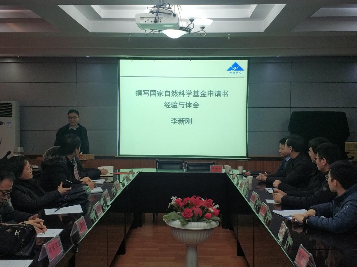 1月9日下午,化工学院召开“国家自然科学基金申报”专题报告会,我校新任校长助理、天津大学李新刚教授做了题为《撰写国家自然科学基金申请书的经验与体会》的专题报告,马军党副校长及化工学院全体教职工参加。