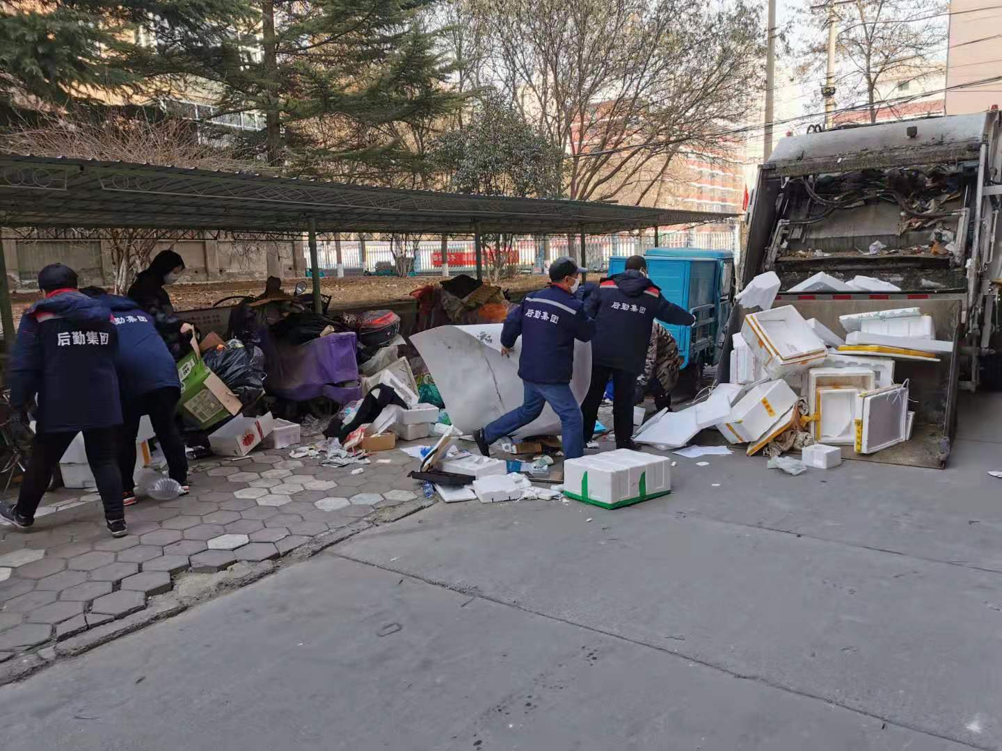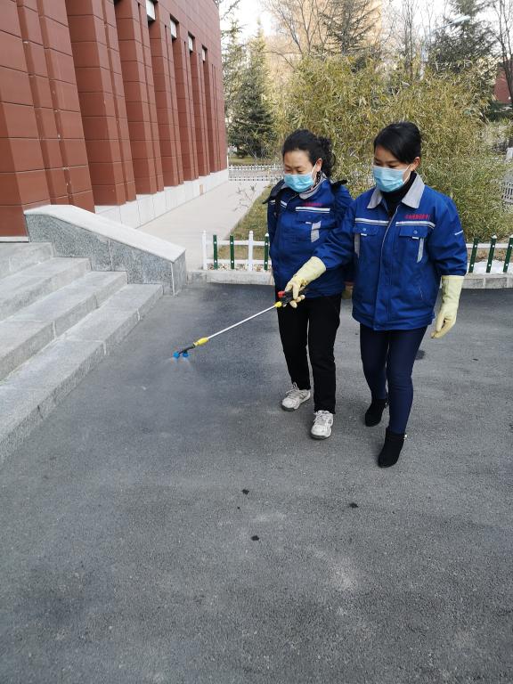 环卫中心加强了疫情防控期间校园环境卫生的清扫和垃圾清运工作。1月28日下午,根据居民举报,环卫中心对家属区20#楼住户捡拾堆放的垃圾进行了强制清理,共清理垃圾5立方左右。从1月26日起,对后勤集团员工公寓采取每日两消毒制度(包括:走廊、楼梯间、门禁、扶手、卫生间及宿舍内部等),并加强了人员进出和住宿管控。1月27日成立环卫中心四人消毒防疫组,对校园内110个室外不锈钢垃圾桶、130个四色垃圾桶、95套室外座椅及3处健身器材区域和保洁车、垃圾转运车、清扫工具采取每日一消毒的作业;对校内生活垃圾收集点采取每日两消毒的作业。从1月28日起,对家属区室外区域5.6万多平方米的道路、花园等进行每两日一消毒的作业。