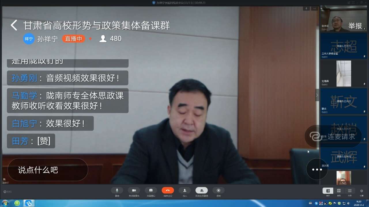 根据《教育部社科司关于加强新冠肺炎疫情防控期间高校思政课教学组织工作的通知》安排,省委教育工委采用“陇政钉”视频会议系统,于2020年3月2日组织全省高校2020年春季学期“形势与政策”课网上集体备课。