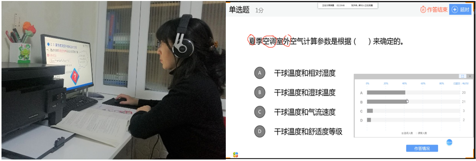 李建霞副教授淋漓尽致发挥雨课堂在线功能。李老师《暖通空调》在线课程于第二周正式开课,采用“QQ群视频+雨课堂”的组合方式,她认为QQ群视频的优势在于网络畅通性好、屏幕分享画面十分清晰,还可以方便地上传参考资料、布置作业、签到打卡等,而雨课堂的优势重点在于对学生的实时监控,如雨课堂后台数据可以及时反馈学生预习情况、课中可通过“发题”功能现场考核学生预习效果以及学生对课堂讲授重、难点内容的掌握情况,“随机提问”功能可以集中学生的注意力,“弹幕或投稿”功能则能够及时反馈学生本讲内容的学习感受,同时雨课堂还具有布置和批改作业等功能。她认为,如果充分运用QQ群和雨课堂的全部功能,教师完全能够驾驭线上课堂,学生也能够达到很好的学习效果。另外,她也给大家分享个小经验,由于雨课堂网络不够稳定,尽量让学生提前15分钟左右进入课堂,进入后全程不要退出登录状态,只要登录后抢占了网络资源,后面使用是十分稳定的。