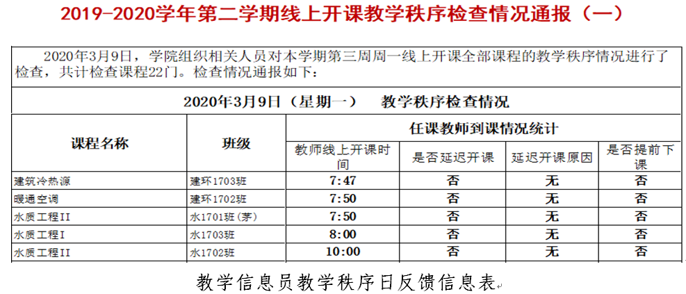 出台文件,授课指导有章可循。学院根据学校总体精神,及时出台了线上授课的工作方案和指导意见,先后出台了《环境与市政工程学院关于2019-2020学年第二学期延期开学期间教学工作安排的通知》《环境与市政工程学院关于印发2019-2020学年第二学期本科教学听课安排的通知》《环境与市政工程学院关于疫情影响下2020届毕业设计(论文)相关工作安排调整的通知》等线上教学相关通知文件,明确了延期开学期间线上教学的总体原则,课表课程、毕业设计(论文)、课程设计、实习实践的线上工作部署,线上教学工作的监督考核,以及与将来线下教学的有效衔接等问题,使教师对线上教学的总体工作精神、进度安排有了清晰的了解和掌握。