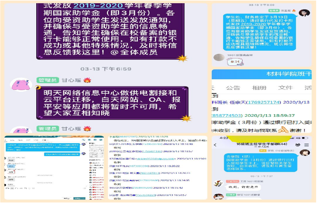 疫情期间,为保证我校家庭经济困难学生能够按时收到国家助学金,学生工作部(处)要求各学院(部)要通过微信、QQ群等平台向受助学生发放通知。截至4月15日,在各学院(部)的积极配合下按时发放3-4月国家助学金,共计发放8946人次,金额563.376万元。