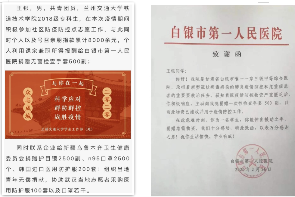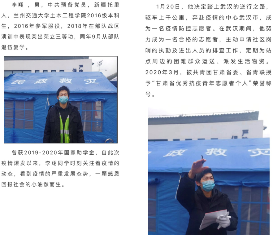 新冠肺炎疫情牵动着全国人民的心,在这场抗击新冠肺炎的“战疫”中,要求各学院及时了解和掌握疫情防控期间本学院(部)学生所参与的防疫知识宣传、志愿者服务、为抗击疫情做贡献等情况,对于具有典型性、代表性、亮点突出的受资助学生先进事迹,及时进行宣传报道,大力弘扬正能量,着重体现资助育人效果。