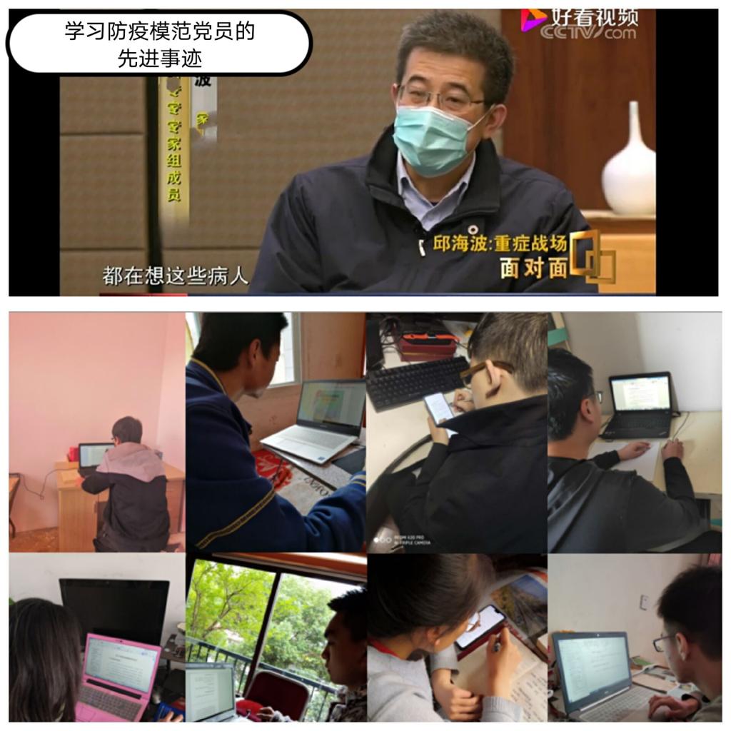 学院其他各师生党支部通过学习在新冠肺炎疫情防控中涌现的党员先锋模范的典型事迹,诸如天津滨海新区应急管理局局长单玉厚“公而无我”“功成不必在我”“功成必定有我”的高尚道德节操和奉献情怀;中央指导组专家组成员张伯礼教授从大年初三就来到武汉,战斗在抗疫最前沿,在摘除胆囊后的第三天就投入工作的感人故事;山东省首批支援湖北医疗队队员张静静的抗疫事迹和她写的一线手记……学习他们“我是党员、我要上”以及在新时代“为人民服务”的高贵品质和舍我其谁的使命感,倾听抗疫故事,传递榜样力量,为中国加油!