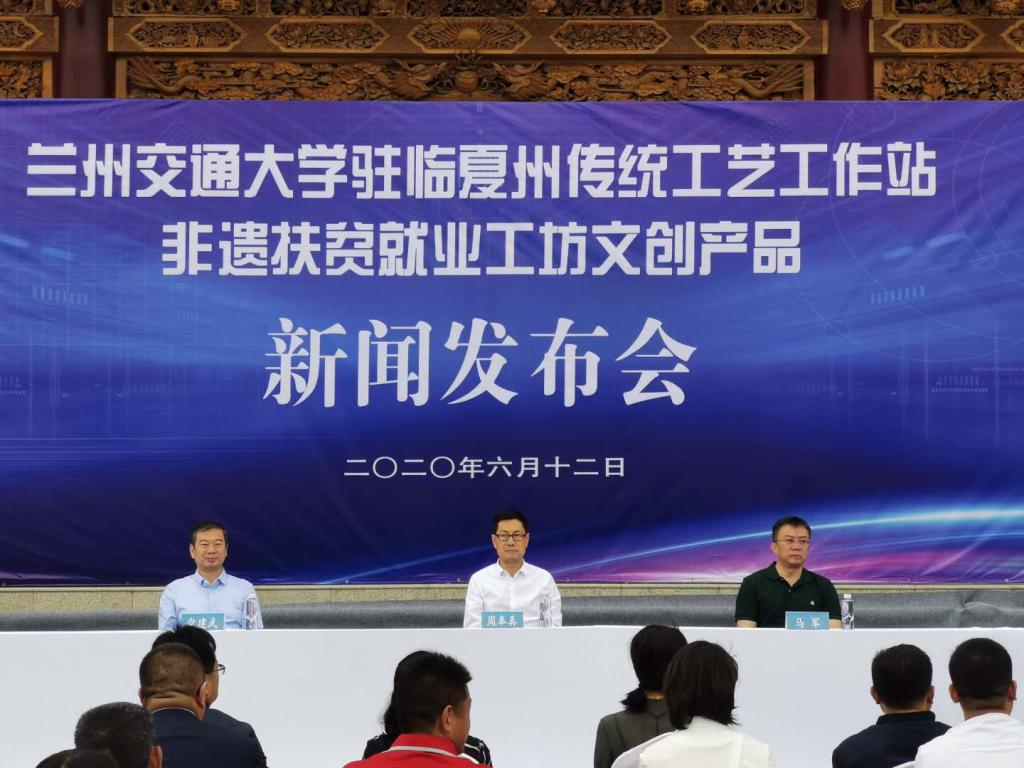 6月12日下午,兰州交通大学驻临夏州传统工艺工作站非遗扶贫就业工坊文创产品新闻发布会在临夏县召开。兰州交通大学副校长党建武、甘肃省文化和旅游厅副厅长周奉真,临夏州人民政府副州长马军出席了会议。