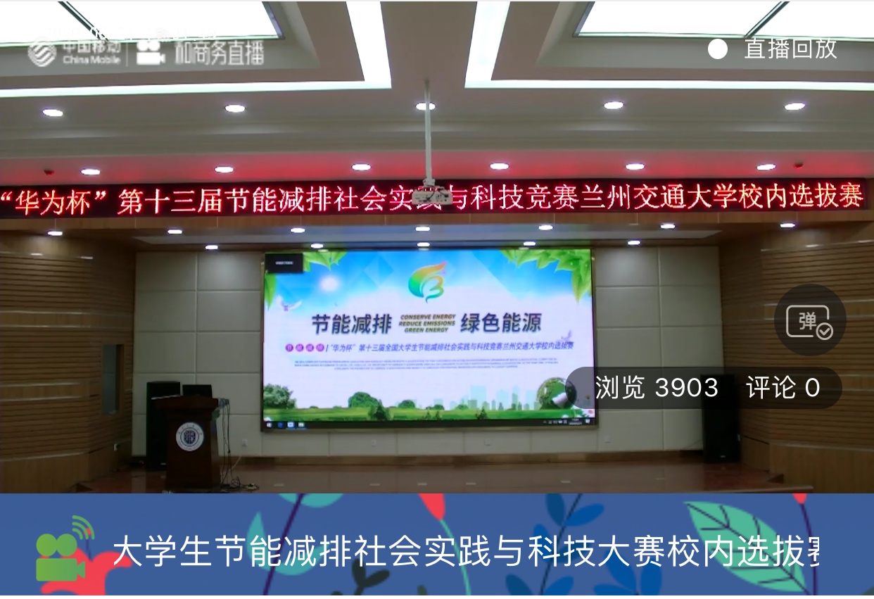 为普及节能减排意识,提高科技创新能力,6月21日,由校团委、创新创业学院、教育发展基金会、环境学院主办,环境学院团委承办的“华为杯”第十三届全国大学生节能减排社会实践与科技竞赛兰州交通大学校内选拔赛在二教报告厅举行答辩。由校团委、创新创业学院、环境学院相关负责人和相关专业教师代表组成的7名评委及来自不同学院的19支团队共计一百余人参加现场答辩,3903人在线观看了直播。